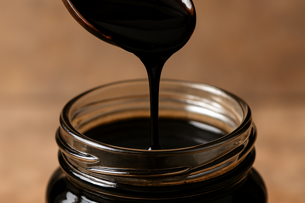 A deep, naturally mineral-rich syrup packed with iron, potassium, and magnesium. Slowly extracted from organically grown sugarcane, it brings a bold, caramel-like depth and a hint of natural sweetness. Its grounding, robust character adds lasting nourishment and gentle energy release, making each gel feel steady, wholesome, and powerfully sustaining.